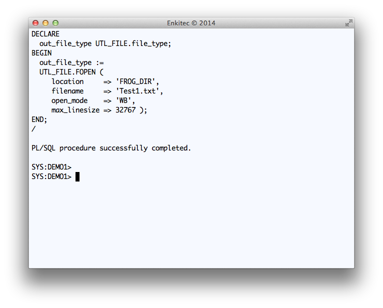 Use code snippet provided below to test the UTL_FILE writing into this new staging OS directory.