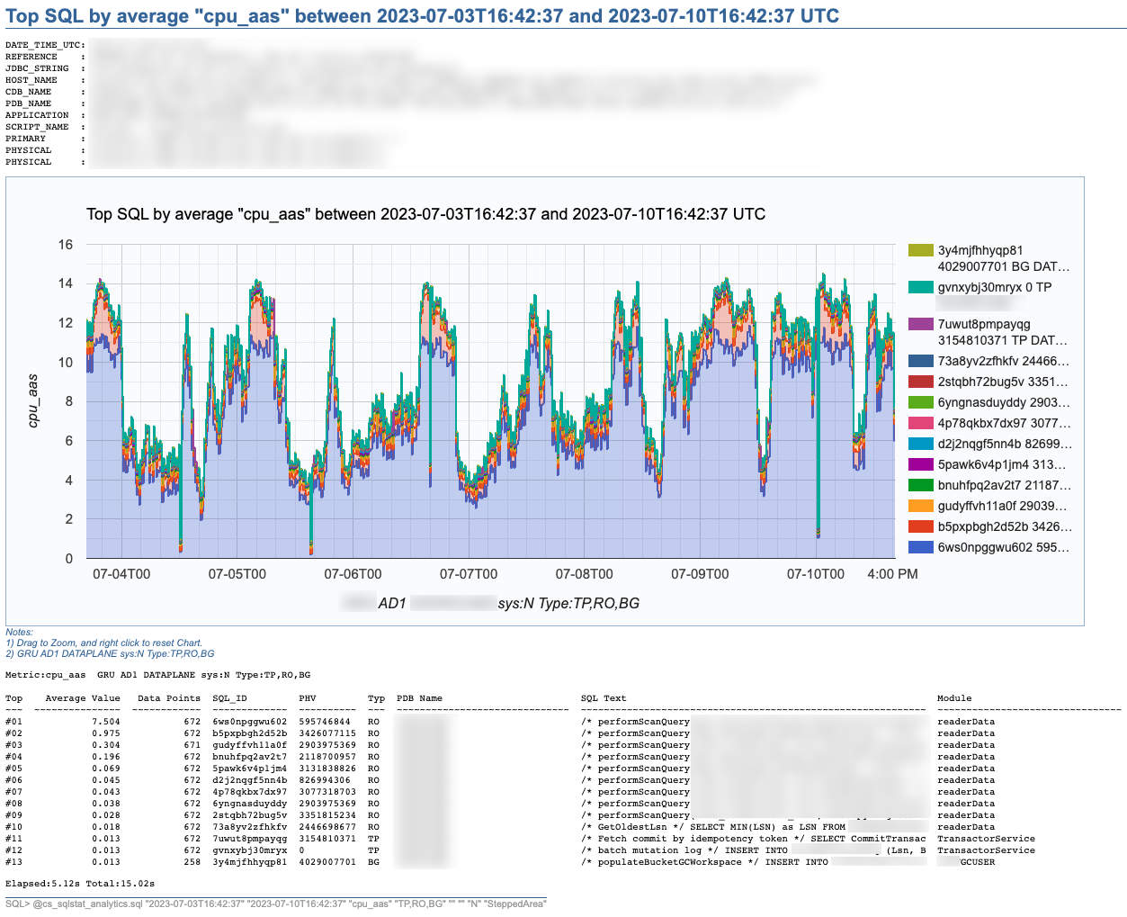 If you like this SQL Statistics Analytics script, you may also like the CS Ash Analytics. The former focuses on SQL Performance out of V$SQLSTATS while the latter on SQL Load out of V$ACTIVE_SESSION_HISTORY (and their DBA_HIST views).