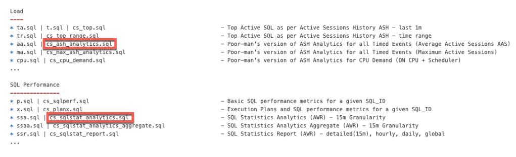 Before you go on, a fair warning: this open-source tool reads DBA_HIST_SQLSTAT, therefore it assumes you are licensed to use the Oracle Diagnostics Pack, like when you access any DBA_HIST view. And a second caveat, this tool has been developed and tested on Oracle databases 12.2 and 19c, so it won’t work on older releases. Final note here: SQL Stats Analytics is part of the “CS Scripts” Tool Set (open-source), then you can use any of these scripts “as is”, but they are not actually supported by me or anyone else (they do work although). Feel free to use this part, or any other part of the “CS Scripts” Tool Kit at your own risk, and with the condition that you cannot claim authorship or ownership.