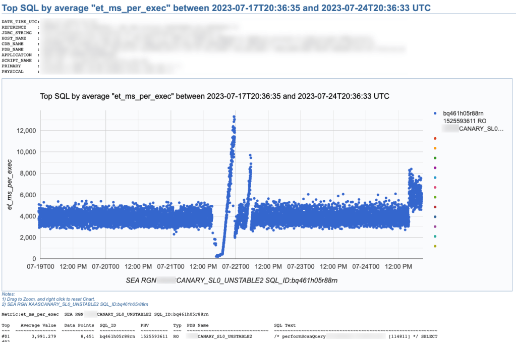 When using the “SQL Text piece” parameter you can focus on a set of SQL statements on a particular application Table, or maybe a SQL predicate of interest. The range of time is limited to your AWR retention (we keep 60 days of history and 15 minutes granularity since defaults of 8 days and 1 hour are not enough for our needs).
